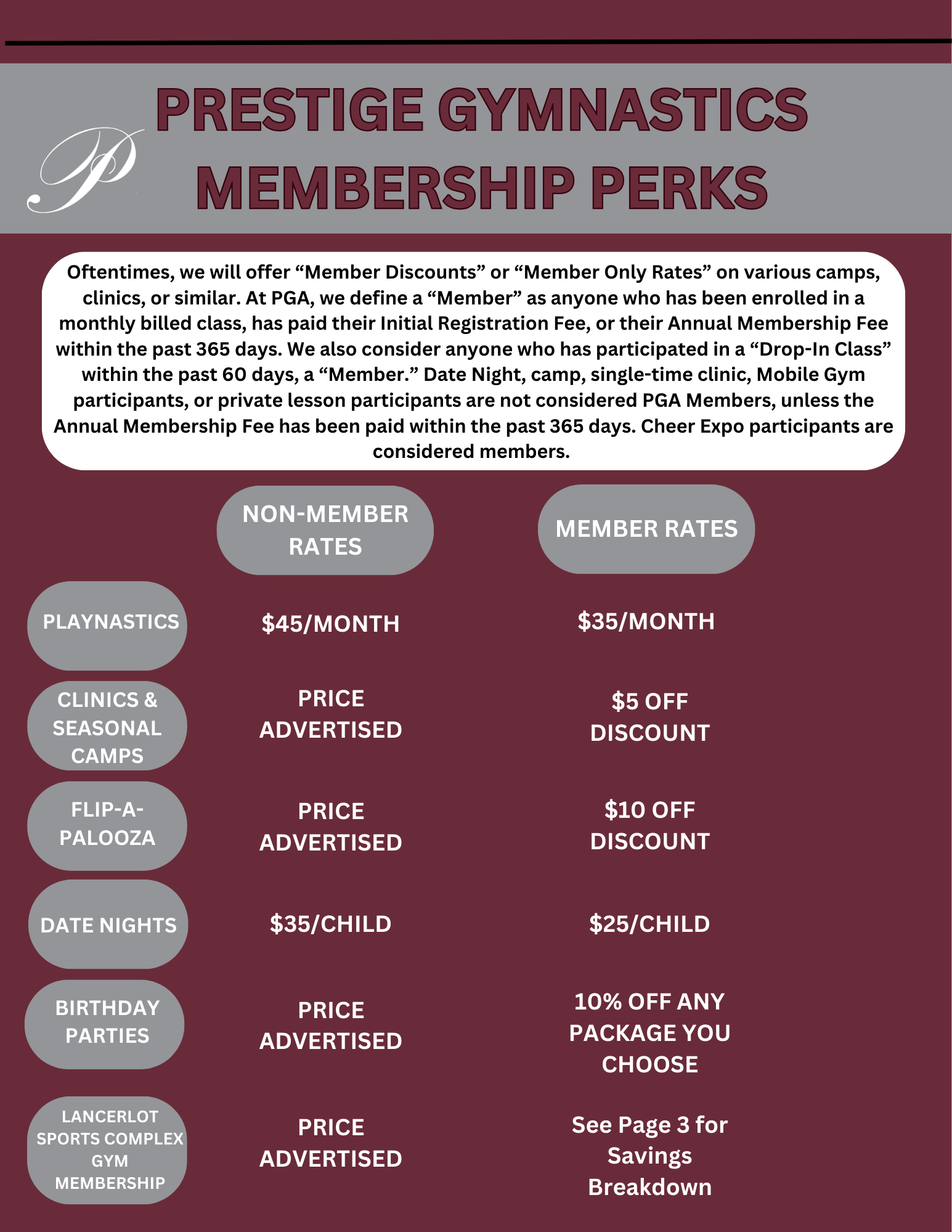 -Discounted membership to Lancerlot Sports Complex